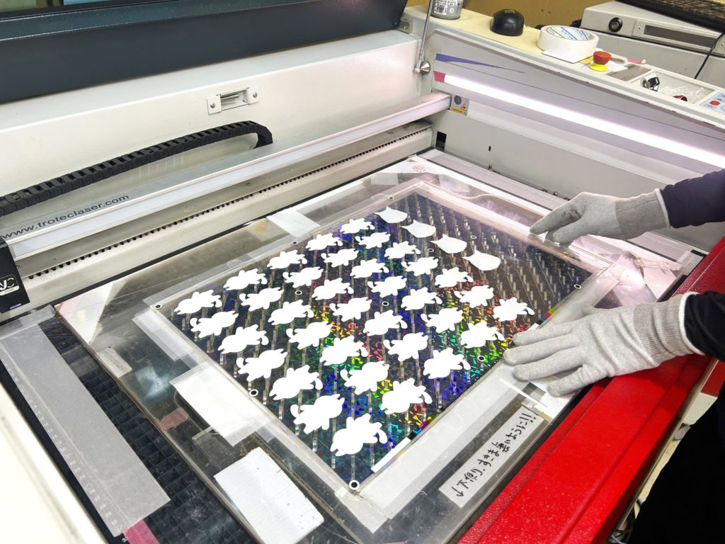 見学では、実際に制作中の印刷物やグッズ制作~検品の様子を見せていただきながら、